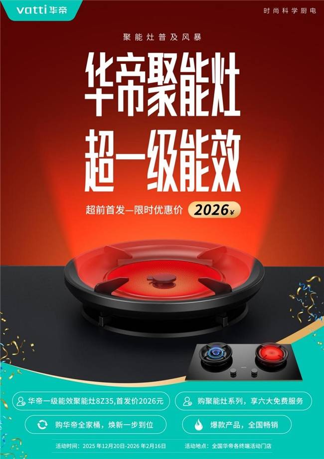 综合这些优势,华帝聚能灶确实算得上是闭眼入不踩坑的灶具选择。现在这款原价2599元的聚能灶推出了新年焕新特惠,仅需2026元即可安装到家,活动期入手比较划算。