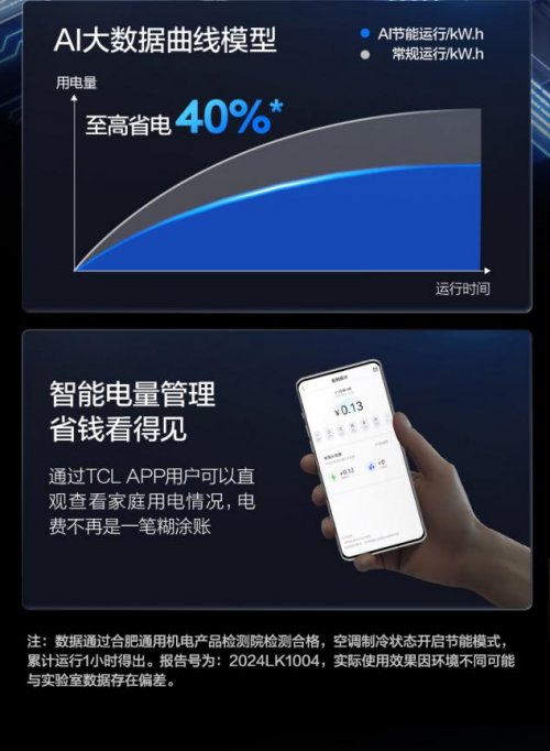 冬季空调整夜开,“电费”是不少家庭的顾虑,TCL小蓝翼P7 AI健康空调的AI省电搭载超省电AI大数据模型算法2.0,能智能调节空调运行频率,制冷制热均能省电,至高省电40%;同时达到超一级能效标准,APF值高达5.6,远高于新一级国家能效标准,长期使用更节能。通过TCL APP,用户还能直观查看家庭用电情况,电费不再是“糊涂账”,让用户在享受温暖与鲜氧的同时,不用为电费发愁。