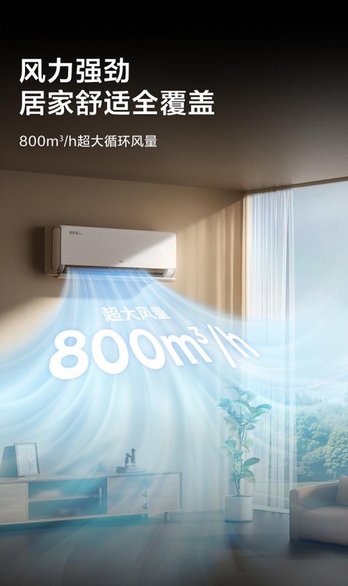 这一设计特别适合有老人、小孩或宠物的家庭,解决了冷风直吹导致头痛、关节不适的用户痛点。在保持风感柔和的同时,TCL省电家Pro确保了循环风量不减,快速实现室内温度均匀。800m³/h(挂机)的超大循环风量配合广角送风,确保室内温度快速均匀,告别“空调房”的禁锢感。