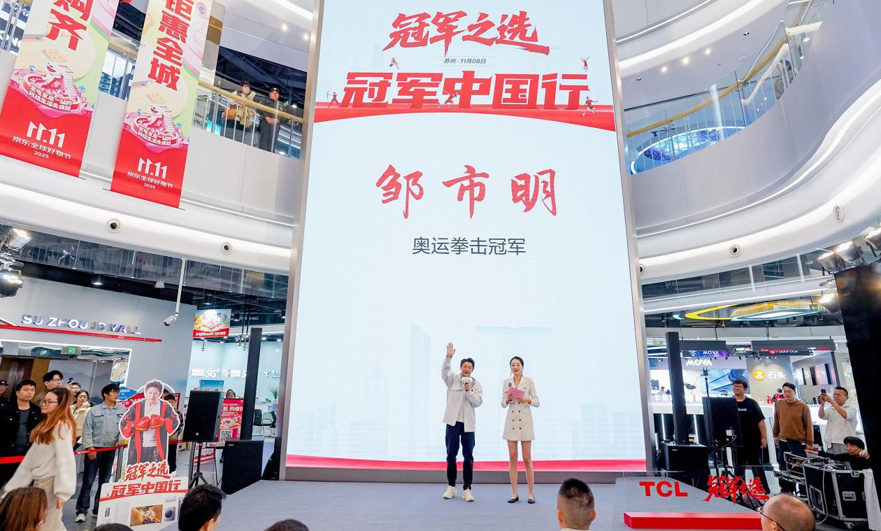 11月8日,奥林匹克全球合作伙伴TCL携手苏州京东MALL,开启“冠军中国行”苏州站活动。活动上,不仅有拳击奥运冠军邹市明亲临助阵,更以全屋智能场景展出空调、冰箱、洗衣机、门锁等先进产品,彰显了品牌“冠军品质”的硬核实力。现场,TCL空调携手邹市明,重磅发布TCL家庭中央空调中高端品牌小蓝翼新品——TCL小蓝翼天花机。